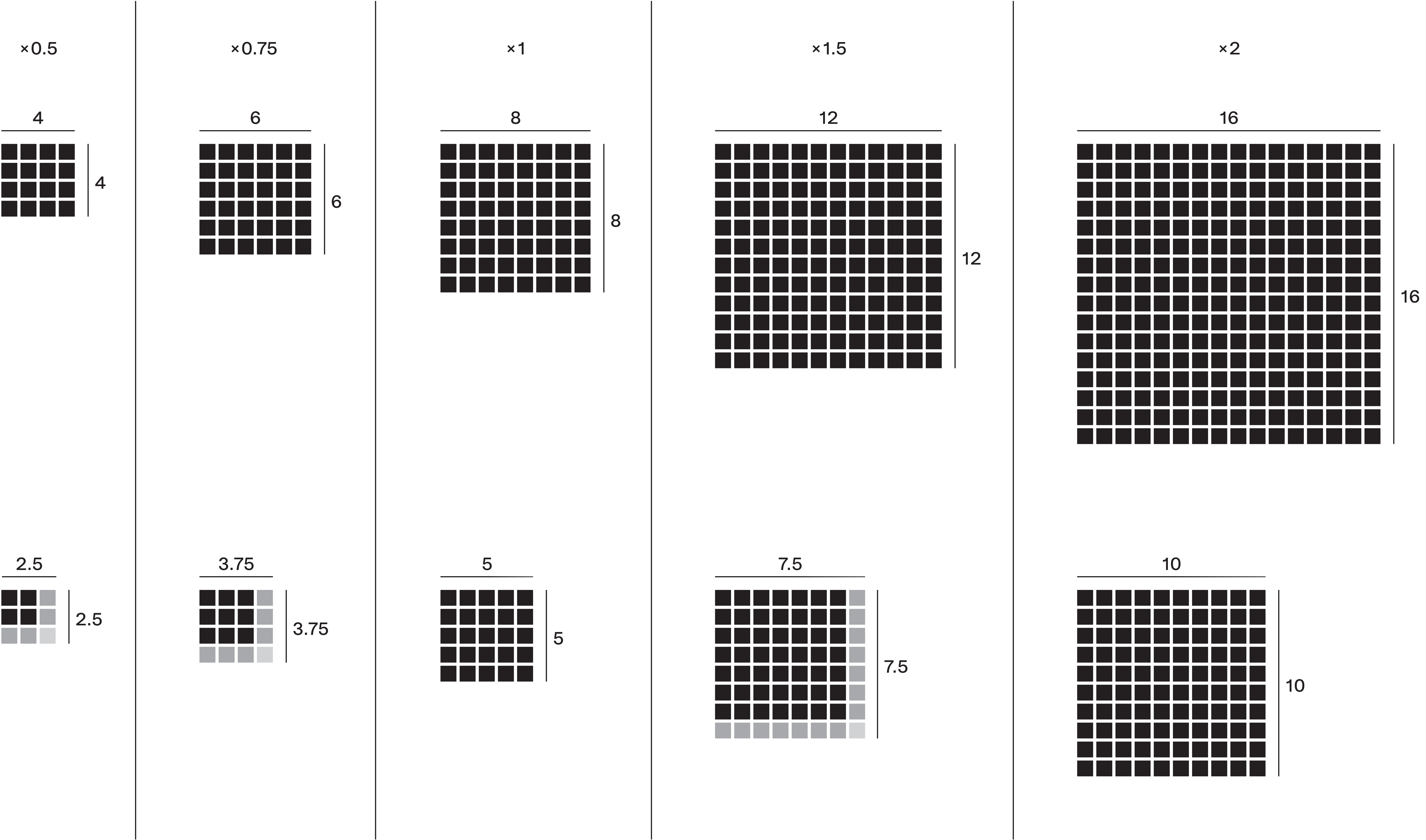 In type design there are various scenarios where this approach comes in handy, such as spacing and scaling glyphs for symbols or inferior/superior numbers and denominators/nominators. As far as my testing goes, this doesn’t affect the sharpness of a typeface itself on a screen, as multiple factors such as hinting and device resolution come to play.