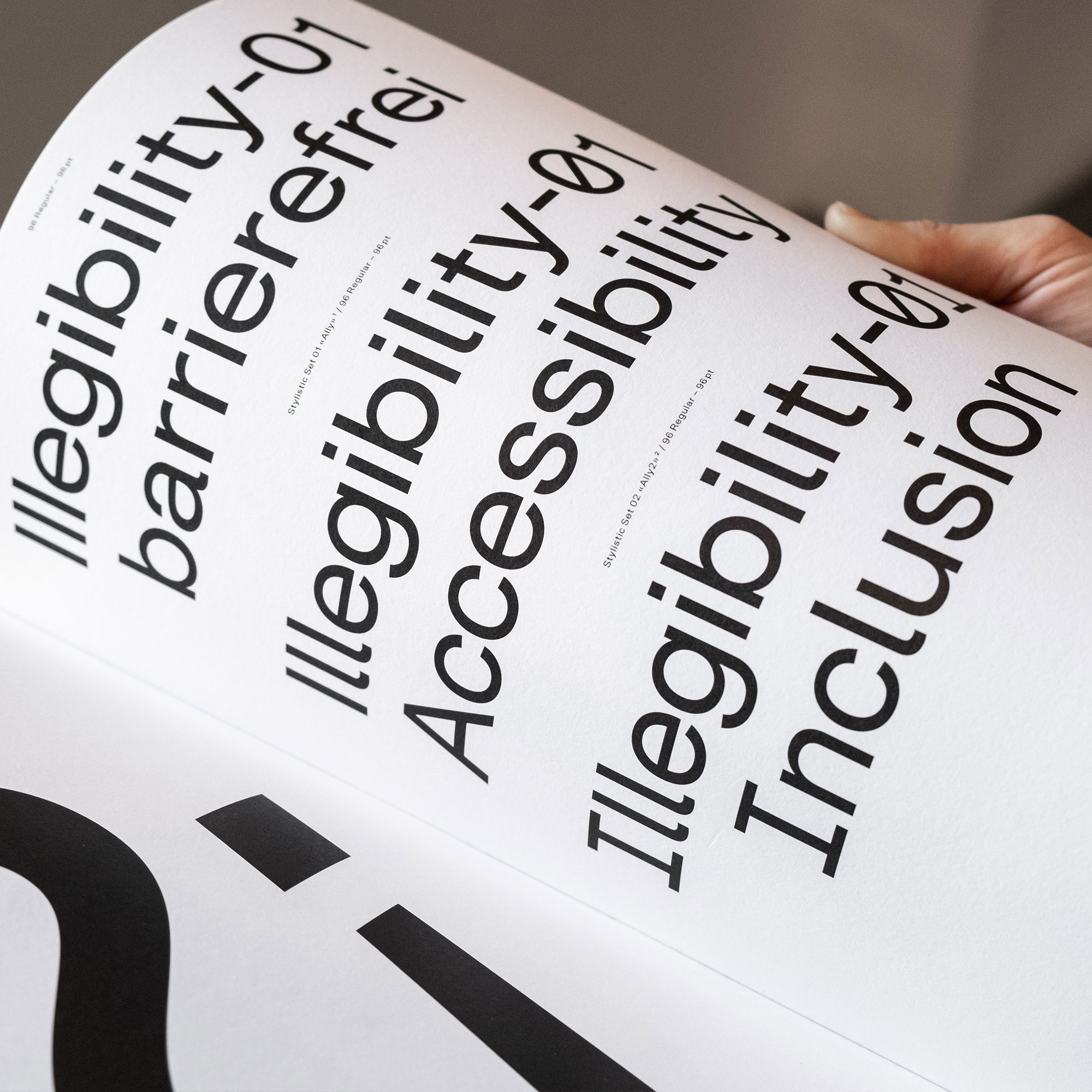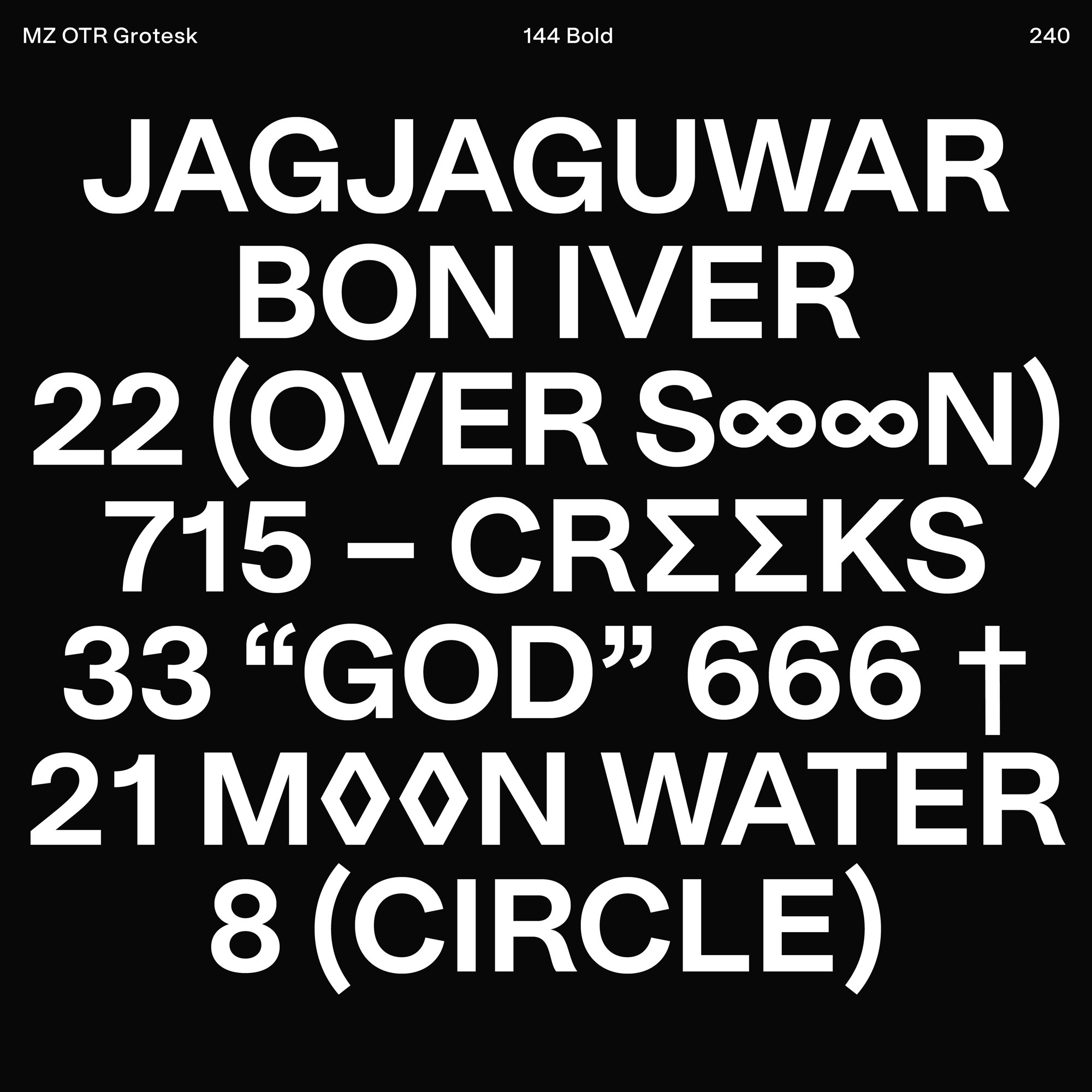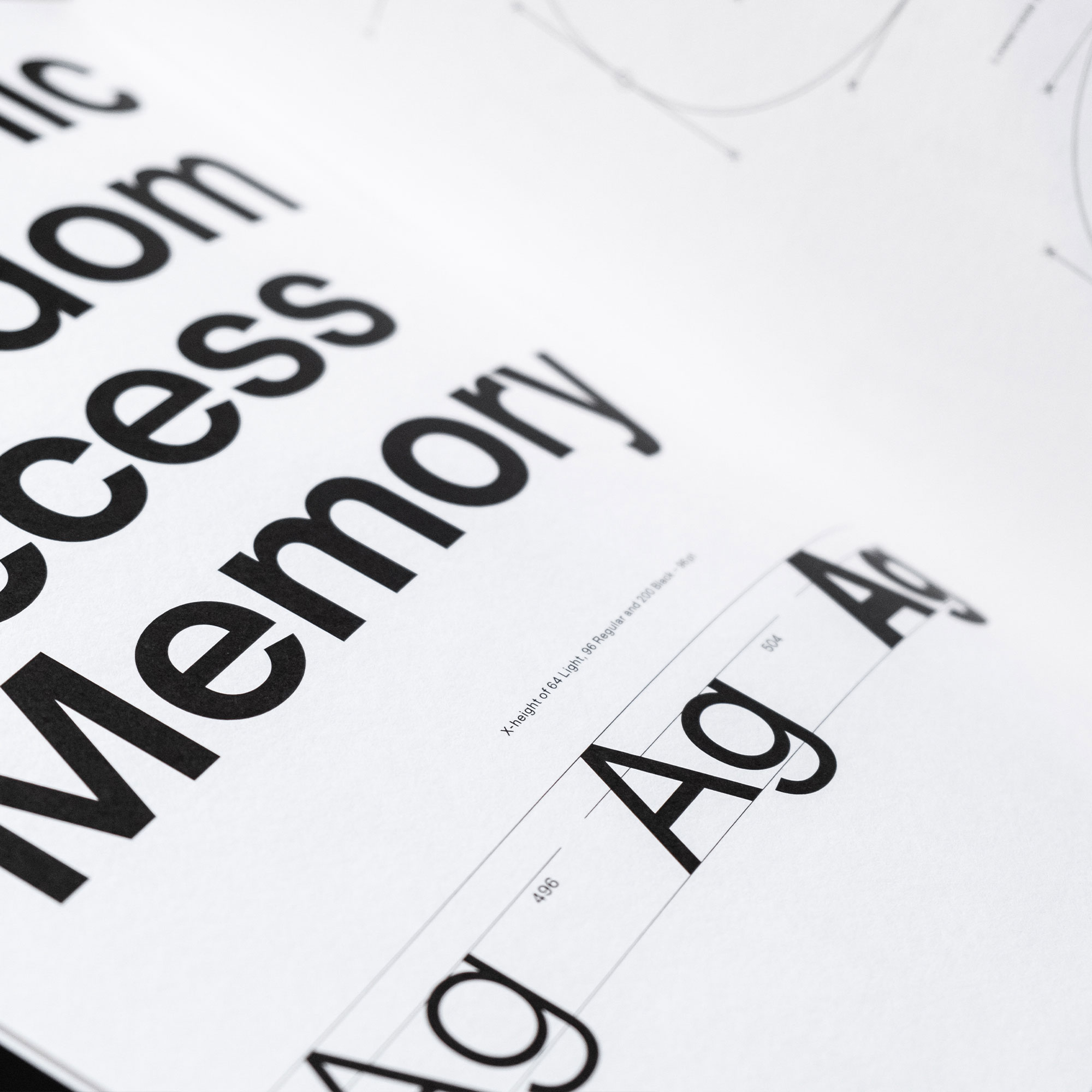 It has always been the intention to design OTR Grotesk to become a workhorse that performs well in a broad range of applications. The tall x-height, generally wide glyphs, and loose spacing allow for great readability at small sizes. The initial design of OTR Grotesk on the other hand experimented with reducing gaps of white space between characters to look tight in display sizes as well as logo design. Together with the idea of finding a formal language that allows glyphs to be very round, this resulted in overhanging terminals of certain curves (e.g. in a and s).
